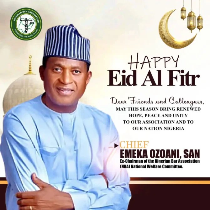 As we mark the joyous occasion of Eid-al-Fitri, I extend my warmest felicitations to our Muslim brothers and sisters within the Nigerian Bar and across the nation.